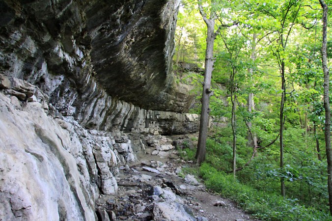 My first stop was Ha Ha Tonka State Park, one of Missouri’s premier parks, boasting high-quality chert, dolomite, and sandstone savanna interspersed with dolomite glades. It is on these glades and savannas that I hoped to find Agrilus impexus, or failing that at least collect a nice diversity of other jewel beetles on the oaks and hickories of the savannas and surrounding woodlands. However, it was with some reservation that I even came here after being told by my colleague at the Department of Natural Resources just 2 days before my trip that 75% of the park’s grasslands and woodlands had been burned within the past two years. For an insect collector, this is never good news – in all my years of collecting insects, my experience in relatively recently-burned habitats has been consistent: collecting sucks! I decided, however, to visit Ha Ha Tonka anyway because of the quality of the natural communities it contains, thinking perhaps I might be able to find pockets of unburned habitat supporting good insect populations. This was not to be. I beat oak after oak in the savannas and woodlands – nothing! I swept little bluestem and Indian grass in the glades – nothing! The foliage was lush and green and the savanna and glade landscapes highly diverse – given the time of season the place should have been teeming with insect life, yet it almost seemed sterile. Were it not for a few Chrysobothris quadriimpressa jewel beetle adults that I found attracted to a recently wind-thrown black oak tree, I would not have seen any insects here at all. It appeared my fears about park-wide depression of insect populations had been realized. However, not one to waste a visit I decided to explore some of Ha Ha Tonka’s fascinating geological features. Ha Ha Tonka contains one of Missouri’s best examples of karst geology, with complex structures formed from the collapse of a major cave system. The Devil’s Promenade is one of the more spectacular examples of such, its horseshoe-shaped cliff representing the former interior walls of a now-collapsed cave. As dusk approached, the day’s poor insect collecting caused me to abandon my plans to stay here and blacklight for nocturnal beetles. Instead, I decided to break from the itinerary, drive further west and explore Lichen Glade Natural Area in the morning before heading to the Penn-Sylvania Prairie BioBlitz later that afternoon.