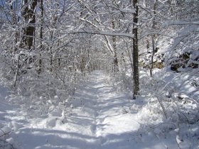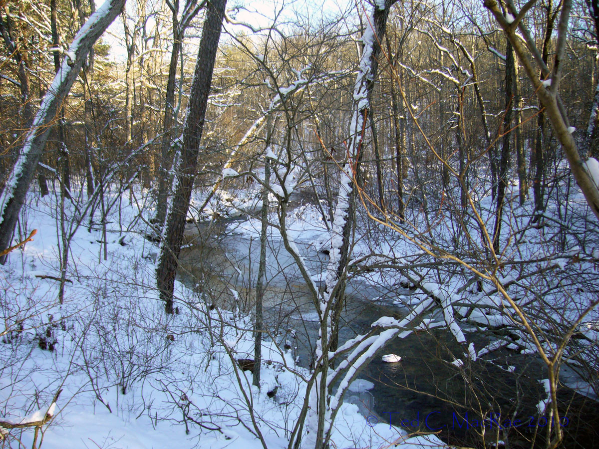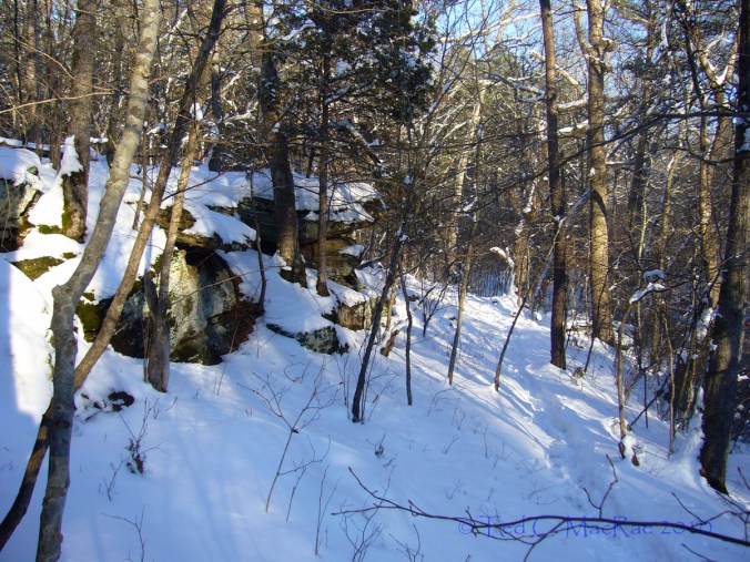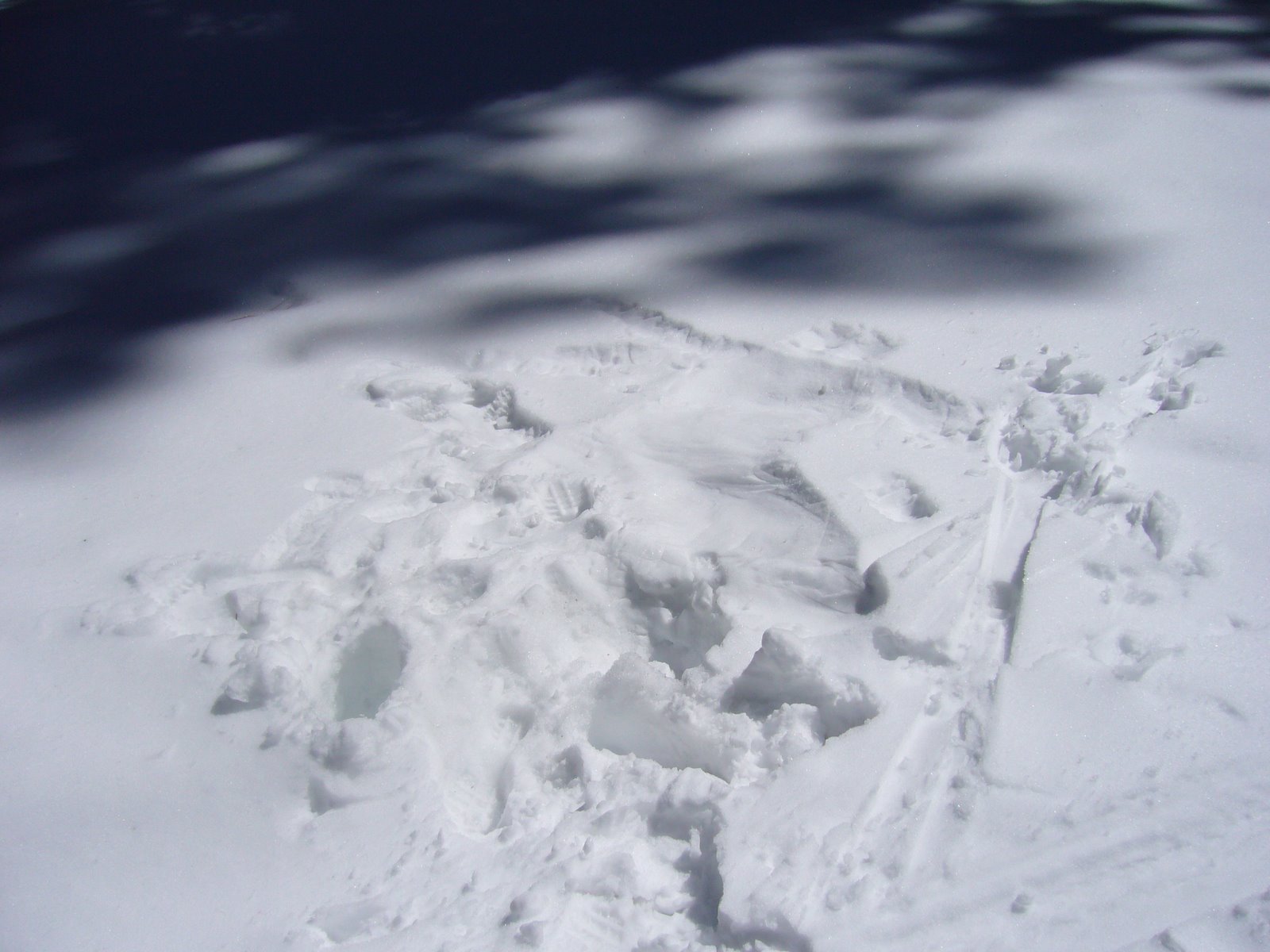 We encountered a few cross-country skiers during our hike, but for the most part we spent the day in solitude. Shortly after beginning our hike, however, we came upon this impression in the snow. At first we thought someone had attempted to make a “snow angel,” but after studying it more carefully we realized it was made by a cross-country skier who had fallen and then struggled to get back up: