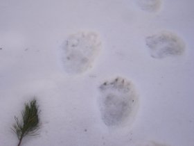 At the beginning of our hike, signs warning of bears and pleading not to feed them caught the girls attention. I told them it was winter and that they would be hibernating, but I wondered if at this late stage they might actually be starting to become active. It wasn’t long before we encountered these unmistakably bear tracks, made fresh in the new-fallen snow, and the more we looked the more abundant the tracks were to be found. I secretly (and the girls outwardly!) hoped we would see a live bear, but I don’t think the girls would have handled such an encounter very calmly: