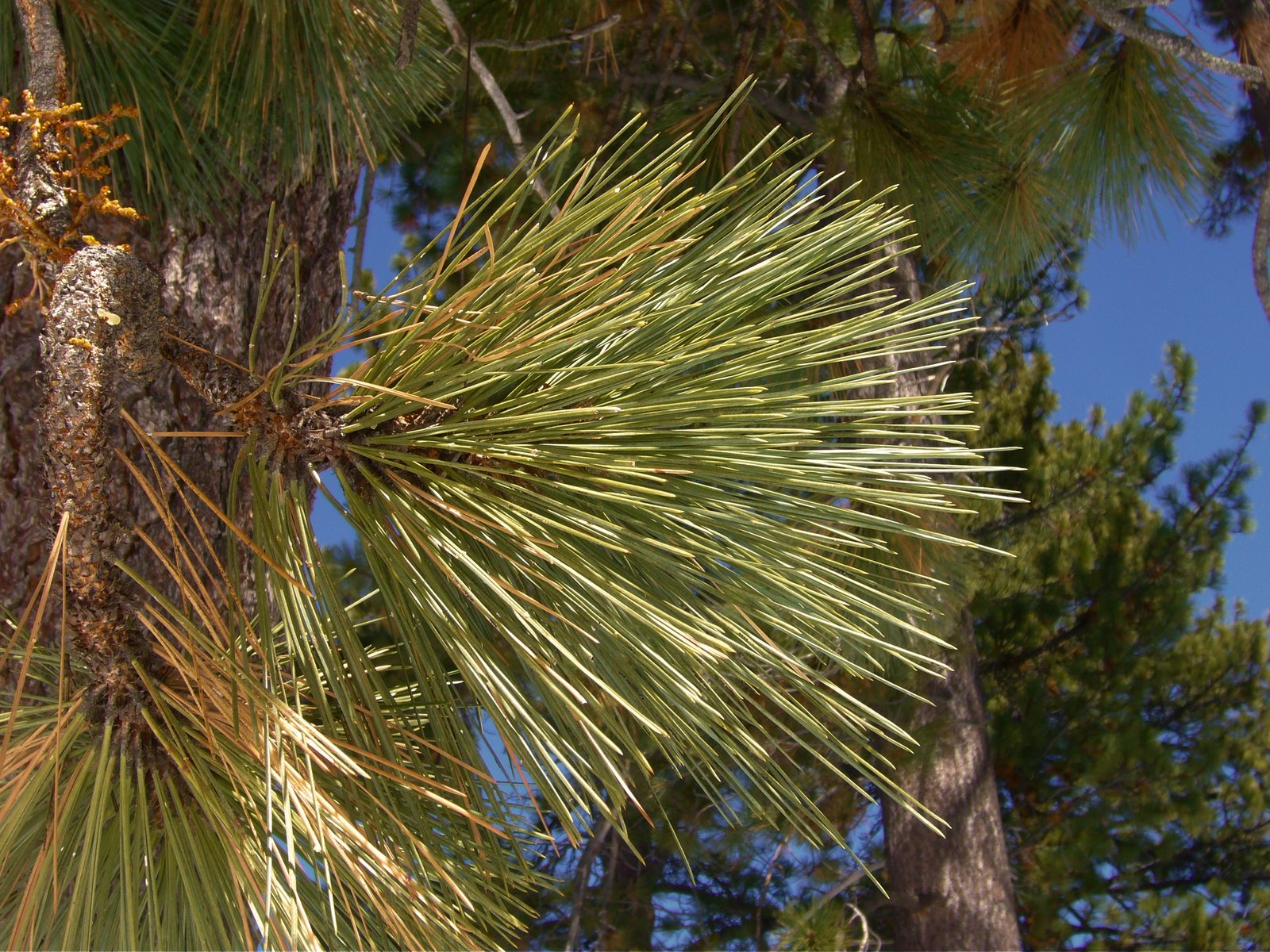 A closeup of the needles, which are in bundles of three and measure around 6-8 inches in length: